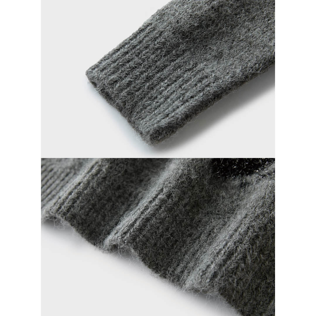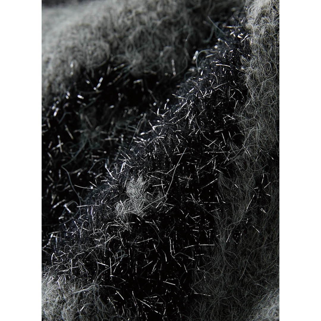 甘さを抑えたグレーのトーンに、ラメの質感が映えて、大人のフェミニンを演出します。ややゆとりのあるシルエットと、柔らかなニット素材がリラックスした着心地を叶え、レザー調のボトムスとも好相性。