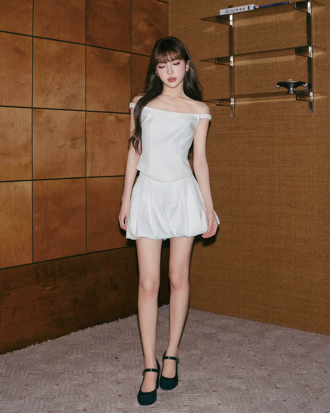 ミニ丈でも安心感があり、大人の女性が自然体で選べる一枚です。