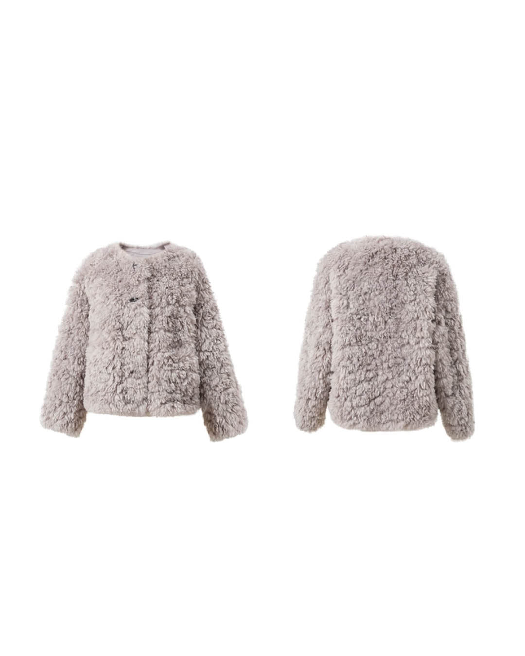 ふわふわとしたボリューム感が魅力のフェイクファーショートジャケット。