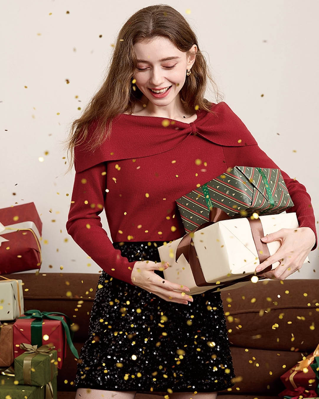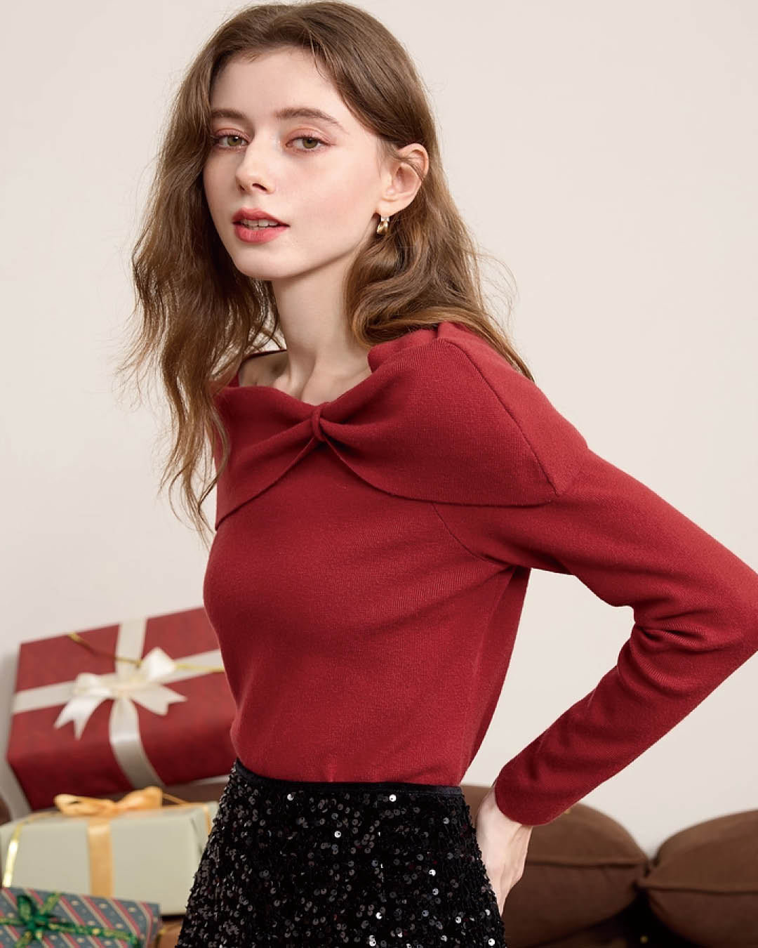 軽やかなニット素材に程よいフィット感を持たせ、ボディラインを美しく引き立てながらも、窮屈さを感じさせない仕上がりに。襟元の立体的なツイストディテールがフェミニンさと上品さをプラスし、1枚で主役になれる存在感のあるアイテムです。