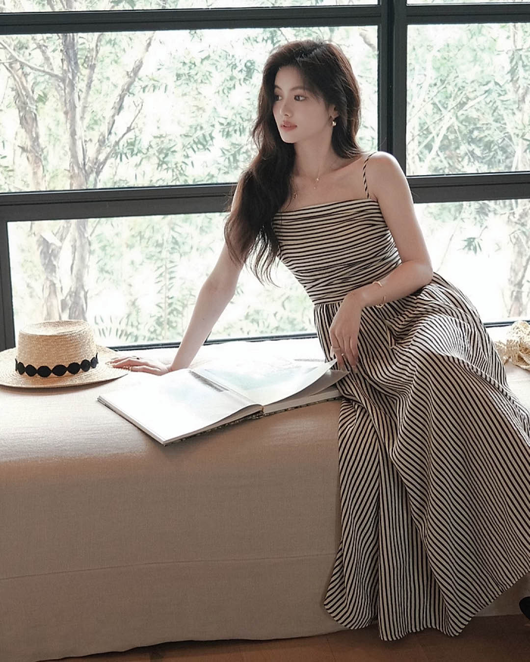 着るだけで雰囲気が完成する、上品カジュアルなストライプキャミワンピース。