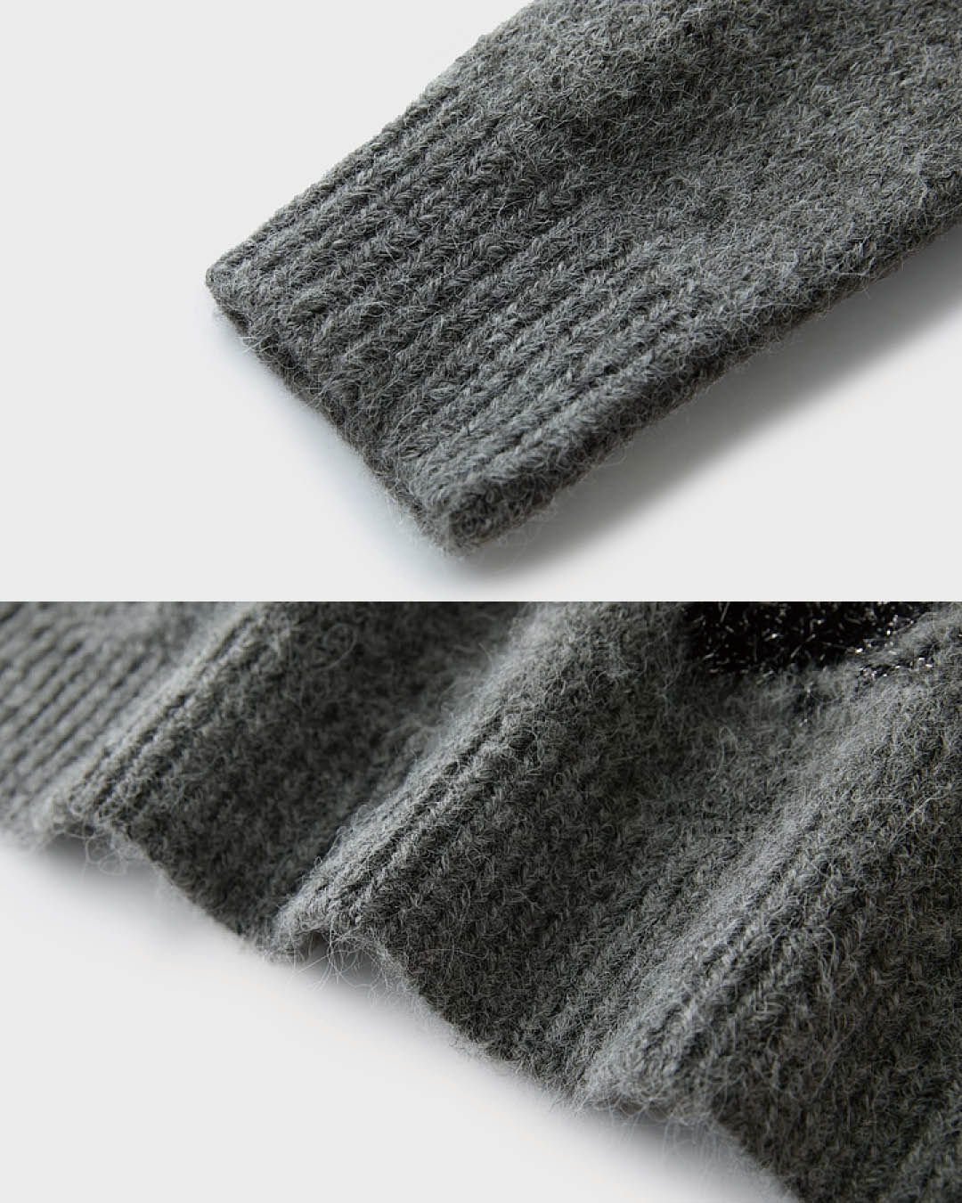 甘さを抑えたグレーのトーンに、ラメの質感が映えて、大人のフェミニンを演出します。ややゆとりのあるシルエットと、柔らかなニット素材がリラックスした着心地を叶え、レザー調のボトムスとも好相性。